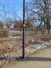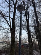 Am Grundstück der Lätarekirche ist an Mast Nr. 5 die Beleuchtung ausgefallen.