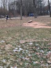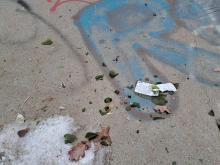 Hirschgarten Skateanlage, es liegen glasscherben und es wurde feuer angezündet.
