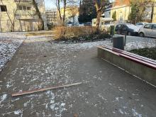 Parkbank stark beschädigt vorgefunden. Vermutlich in der Silvesternacht passiert.
