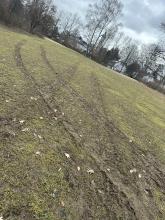 Statt die zwei kleineMülleimer per Hand zu leeren, wurde ein Transporter quer über die Wiese gesteuert.