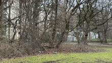 Es liegen noch sehr viele alte Christbäume im Park.