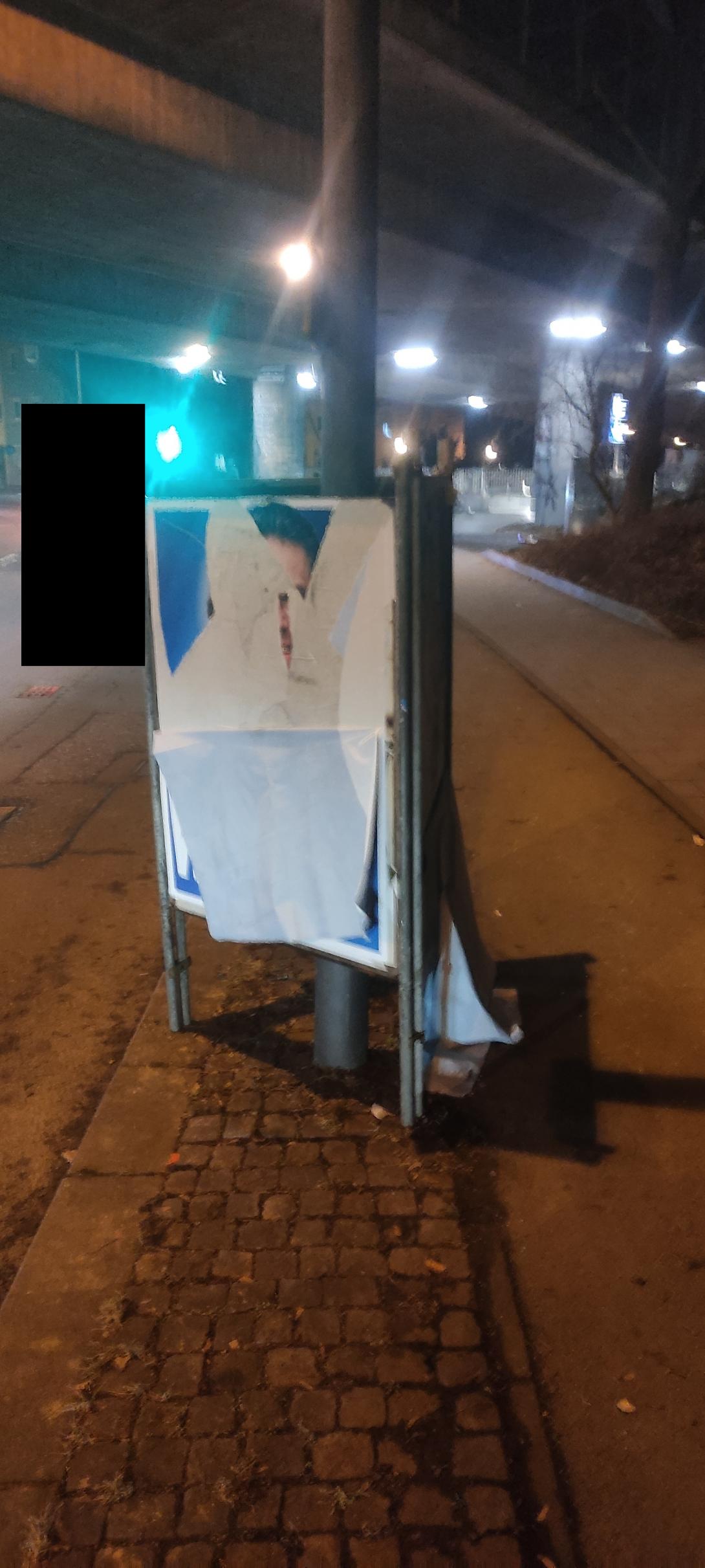 Plakat blockiert Sicht/Straße/Geh-/Radweg