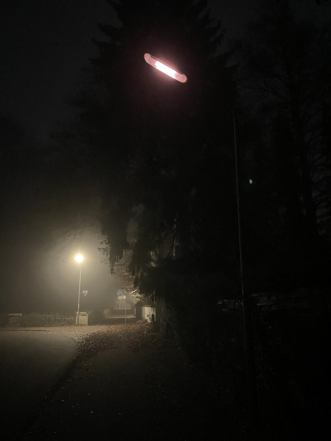 Die Laterne ist ausgefallen und leuchtet nur noch sehr schwach