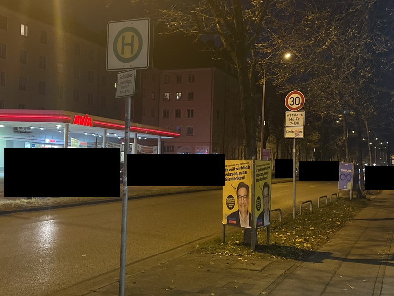 Plakat befindet sich in Sperrgebiet/Bushaltestellenbereich