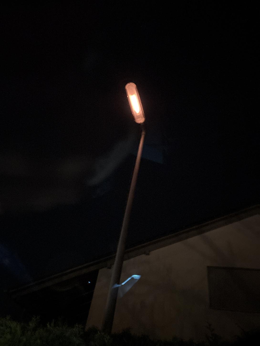 Mast 20 Leuchte ausgefallen, Mast 23, 27 und 31 fast aus, siehe Foto