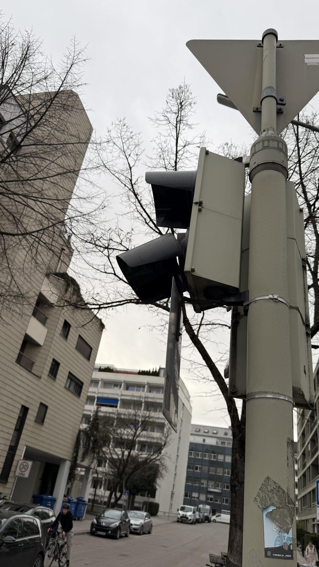 Die Abdeckung oberhalb der Fußgängerampel hängt runter.