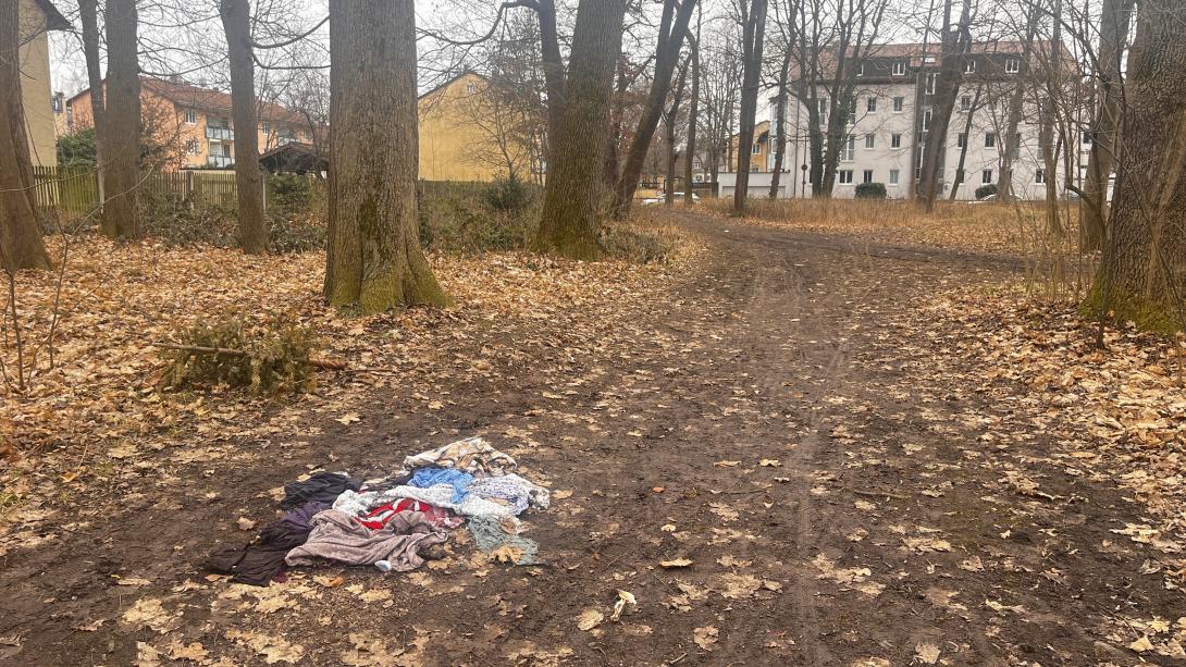 Stapel alter Kleidung am Weg