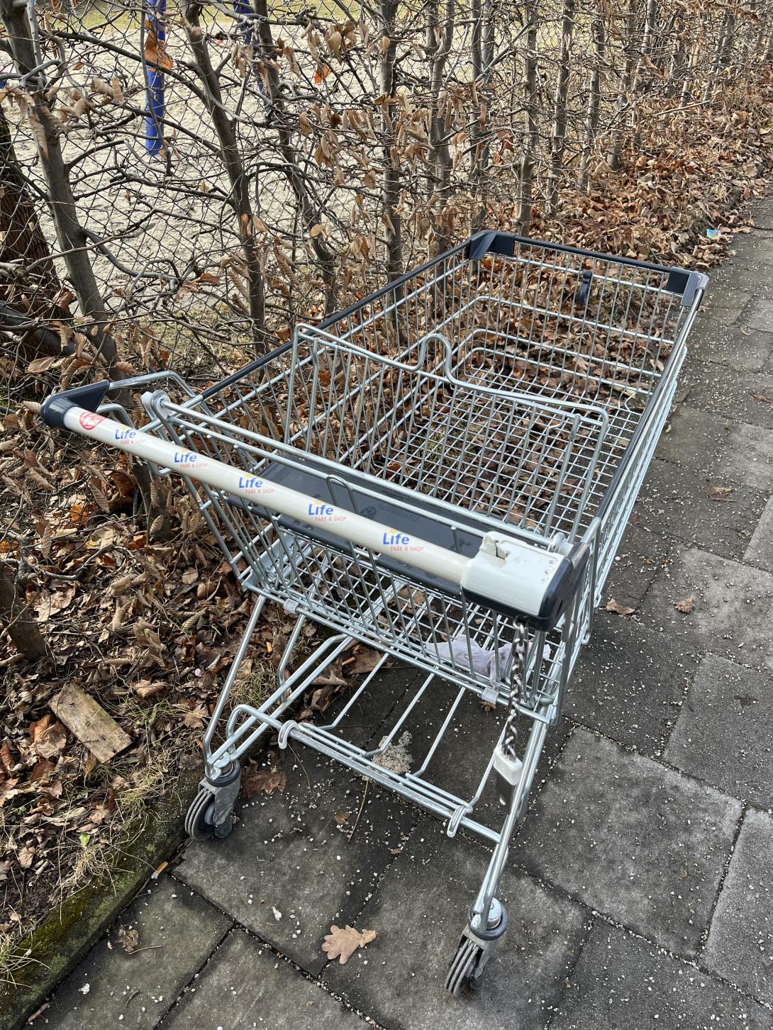 Vermutlich gestohlener Einkaufswagen auf Gehweg abgestellt