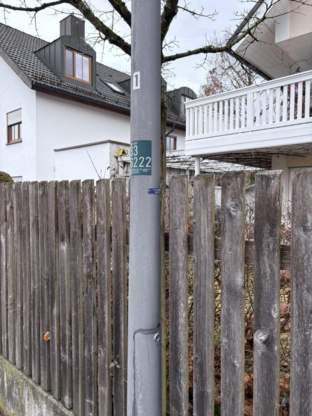 Die Laternen Nr. 1 in der Plumserjochstraße, 81825 München Höhe der Hausnummer 2 brennt schon seit längerer Zeit nicht mehr.