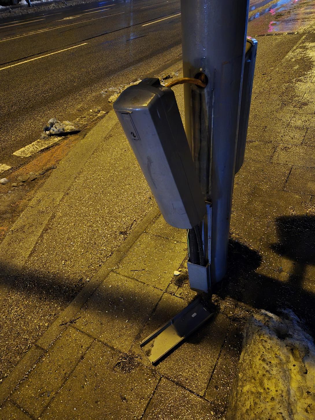 Hier ist der kabelkasten frisch beschädigt worden, evtl. Vom schneeräumer?