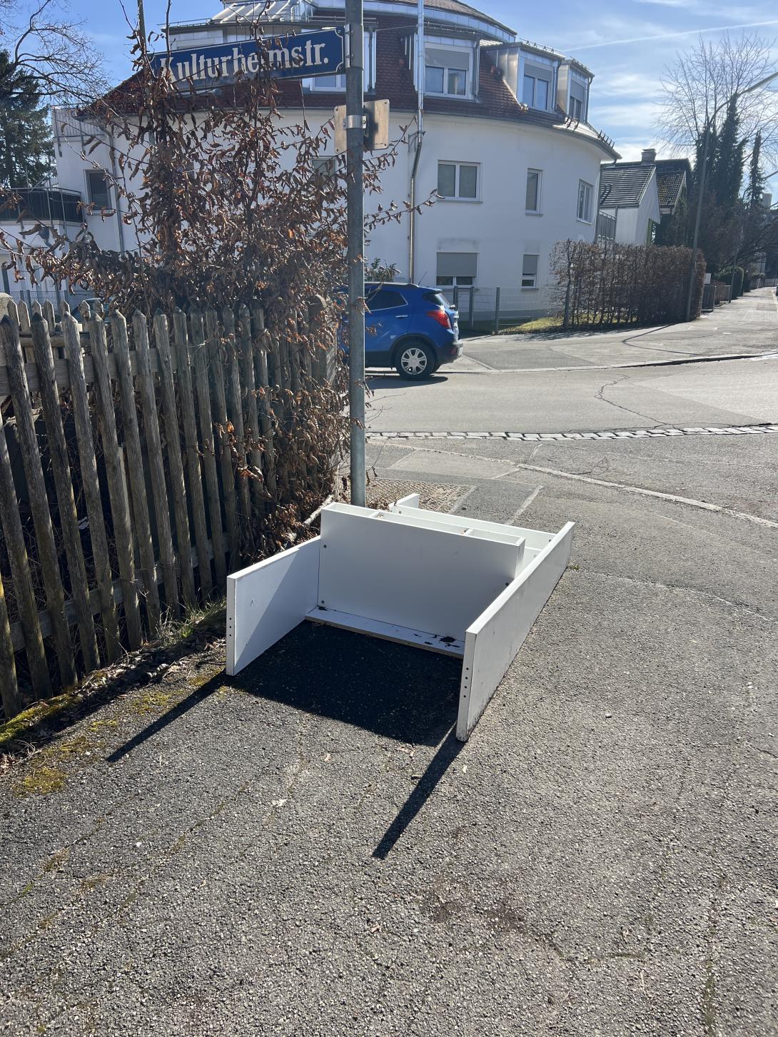 Sperrmüll auf Gehweg abgestellt. Steht bereits seit ca. 2 Wochen dort.