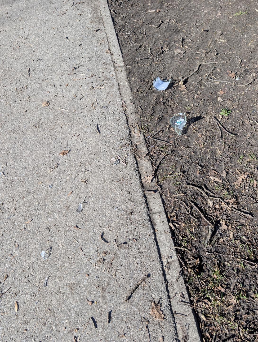 Glasscherben im Park Ecke Schule und Bolzplatz.
