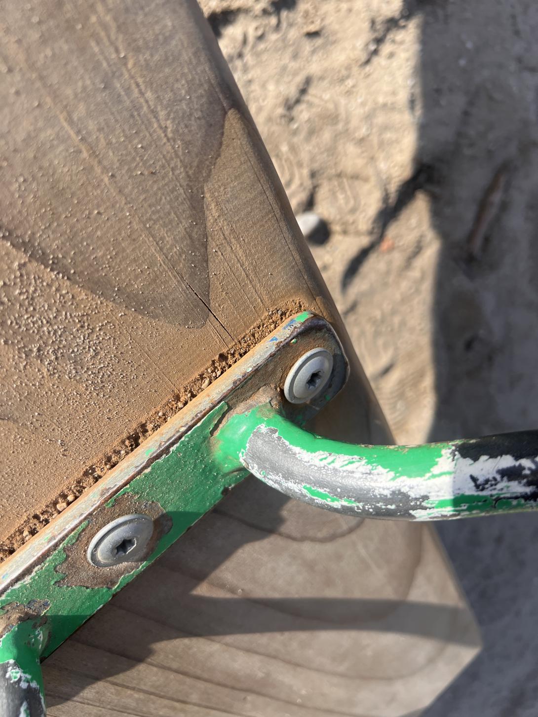 Griff an der Wippe wackelt. Schrauben locker. Zudem ist der Spieltraum schon seit Monaten kaputt (fehlende Rutsche) und ist gar nicht mehr begehbar.