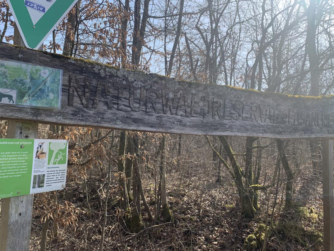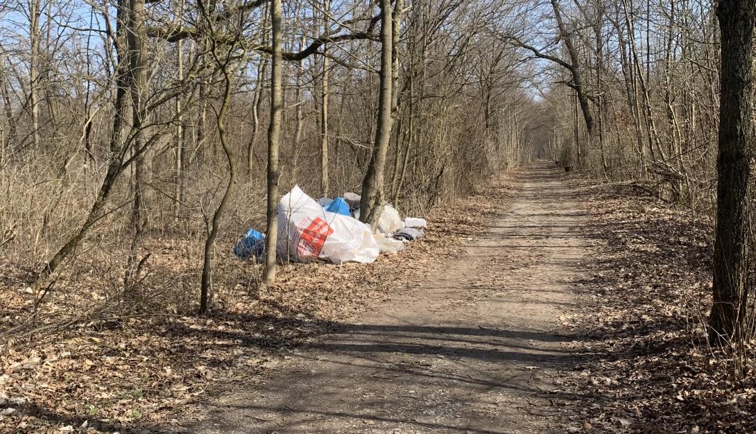 Im Wald an der Einbiegung zum Naturwaldreservat Fasanerie hat irgendwer Müll abgeladen (Plastesäcke, Styropor etc.) siehe Foto