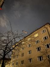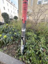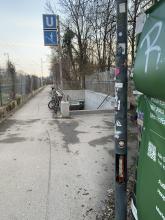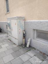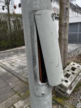 Der Lampenmast wurde bei den Aufstockungsmassnahmen 2021-2023 (Gernot, Bamberger, Schleissheimerstr) beschädigt.