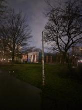 Nach kürzlich erfolgter Reparatur ist die Beleuchtung an Mast 4 in der S-Kurve des Verbindungswegs Leonrodstr-Maria-Luiko-Str wieder ausg