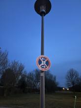 Lampe auf Promenade Riemer Park defekt; Nähe Heinrich-Böll-Str.