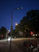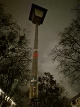 Einer von beiden Lampenarmen an Mast Nr. 55 komplett dunkel