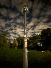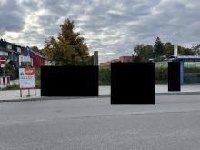 Leuchte neben der Litfaßsäule in der Kurve defekt Richtung Harras.