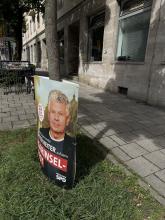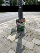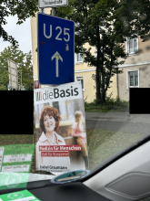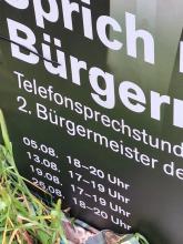 Plakat von B90/Die Grünen mit Hinweis auf Telefonsprechstunde (spätestens Termin 25.08.).