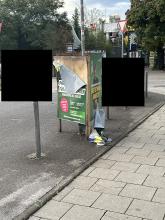 Stele am Resi-Huber-Platz mit Graffiti beschmiert