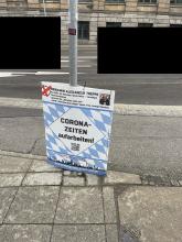 Stehen gelassenes Wahlplakat von Volt - abhängfrist ist bereits abgelaufen.