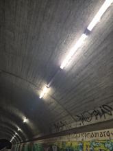 In dieser Unterführung sind viele Leuchstoffröhren aus. Geschätzt ca. 20 bis 30 Stück.