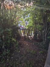 Im Feldbergpark am Horst-Salzmann-Weg auf Höhe der Rückseite der Bezirkssportanlage direkt am Zaun, ist eine Parkbank defekt.