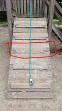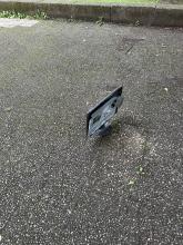 Bank direkt vorm Edeka Lose und wackelt. Nicht mehr verankert im Boden