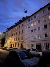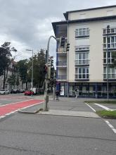 Ampel direkt an der Ecke Georgenstr / Schleißheimerstr. Beim Raumausstatter.
