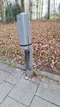 Der Schaltkasten ist aufgebrochen und die Kabel liegen offen da. Vielleicht durch Unfall beschädigt