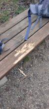 An einer der Bänke wurden Stücke, vermutlich mit einem Messer, "rausgeschnitzt".