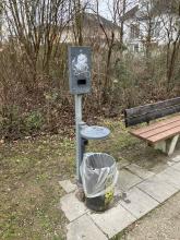 Im Feldbergpark am Ernst-Hochholzer-Fußweg, nahe der Augustinusstraße ist der Mülleimer defekt und der Hundekotbeutelspender ist leer — e