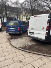 Die Rasenfläche vor der St.-Pauls-Kirche ist stark beschädigt, da mehrfach Liefer- und Servicefahrzeuge darüber gefahren bzw.