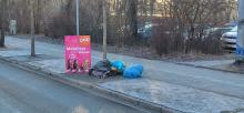 Monatelang war hier ein Anhänger mit alten Autoreifen geparkt, heute früh lagen alle Reifen auf dem Grünstreifen, teils auf dem Radweg un
