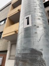 Seit einer Woche ist die Beleuchtung ausgefallen. Da derzeit ein Gerüst vor dem Haus steht, kann man kaum was sehen.