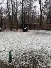 Zwei Bäume neben dem Wasser und Bänke, die letztes Jahr umgefallen sind, wurden entfernt, aber nie durch neue ersetzt.