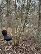 Ein schwerer Fahrstuhl wurde im Gehölz zwischen Winfriedstraße drei und Parkplatz Hirschgartenabgestellt … die vielen Kleidungsstücke, di