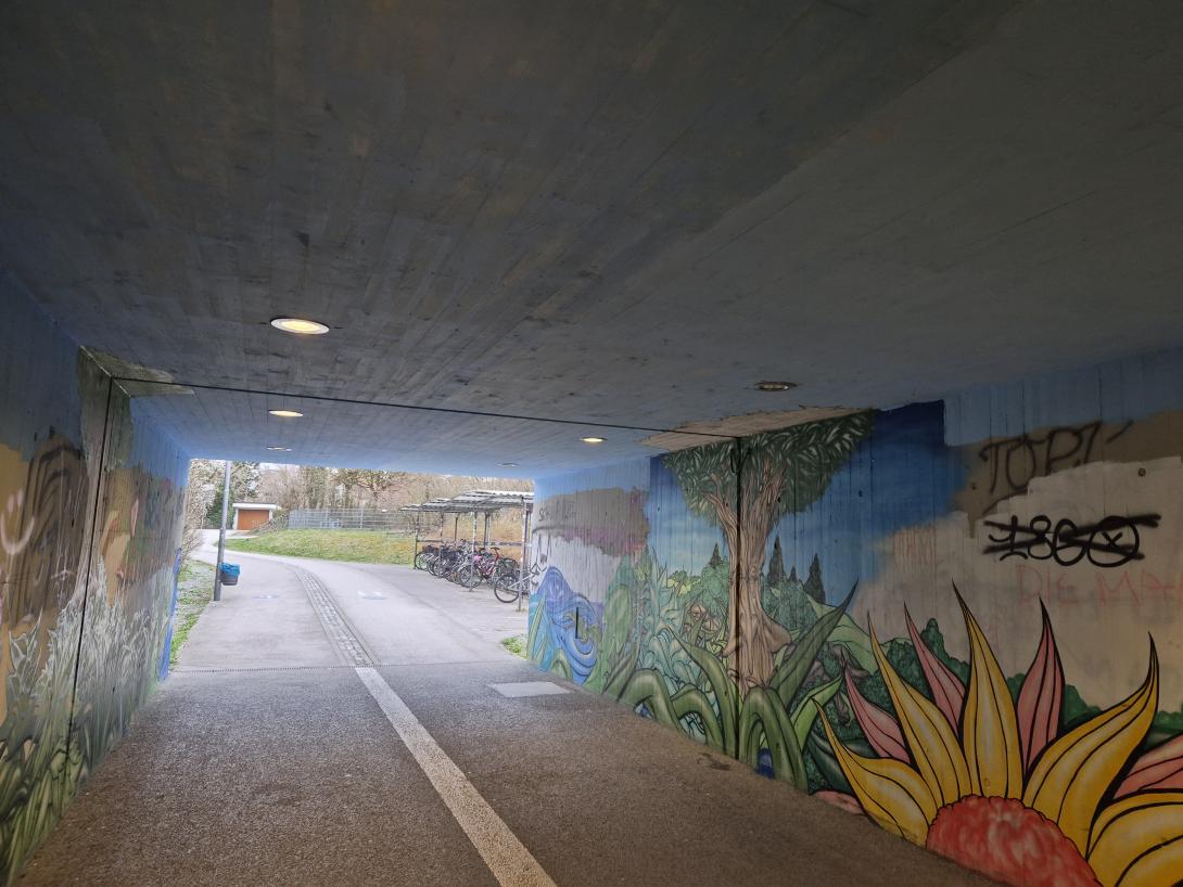 Ein Deckenlicht in der Unterführung ist defekt