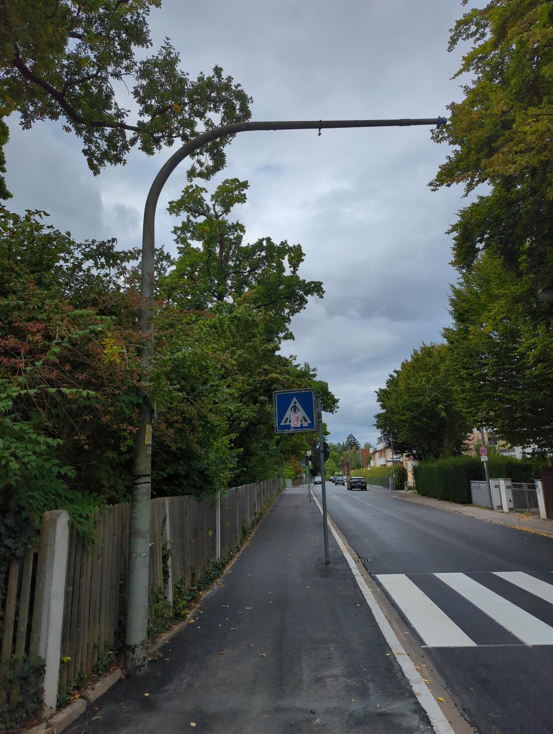 Leuchte wurde durch Baustelle beschädigt und fehlt seitdem komplett. Die Leuchte befindet sich an einem Zebrastreifen