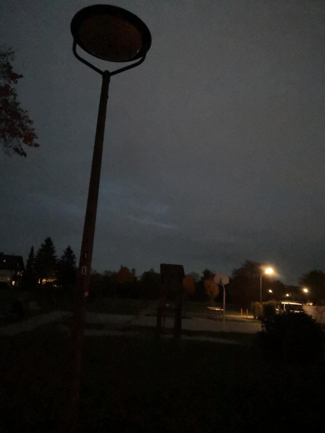 Lampe ausgefallen. Grünanlagenweg auf Höhe Basketballfeld