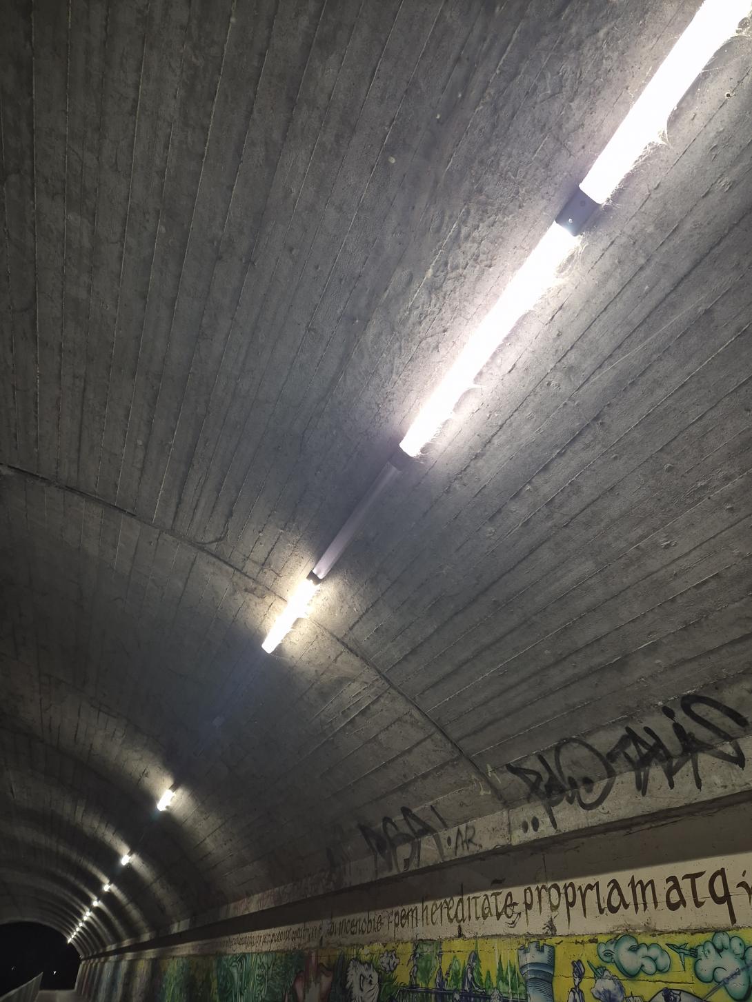 Eine Leuchtstoffröhre in der Tunneldecke ist aus