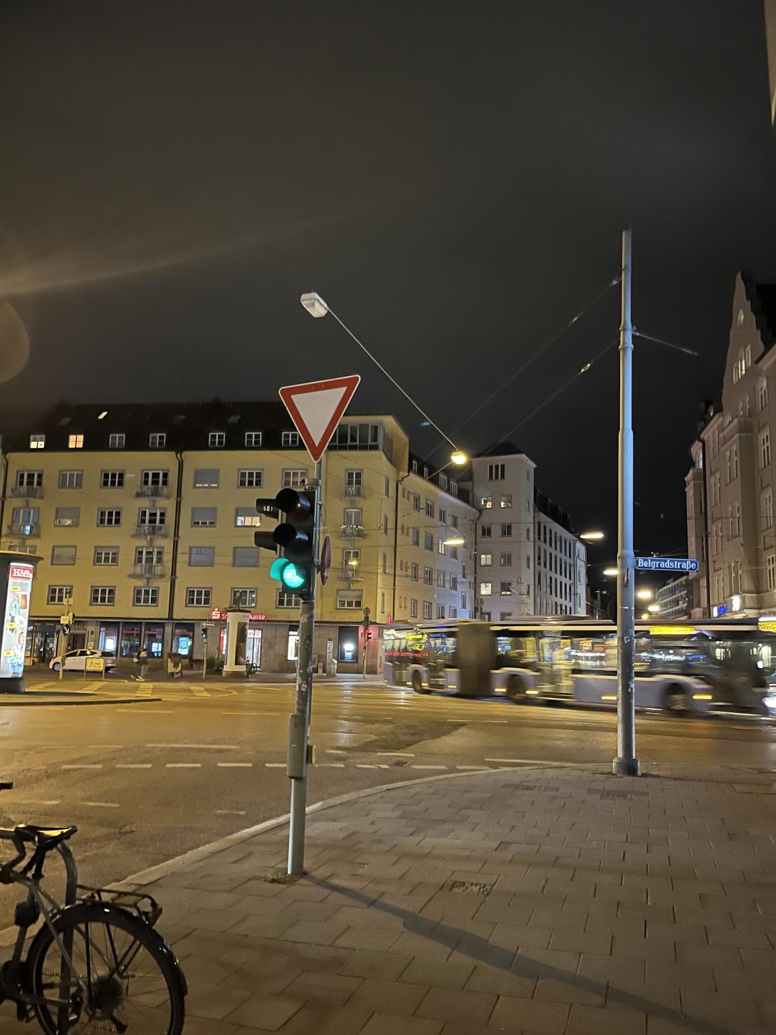 Über der Kreuzung Belgradstr./Hohenzollernstr. ist eine Leuchte ausgefallen. Sie befindet sich etwa bei der Hohenzollernstr. 84