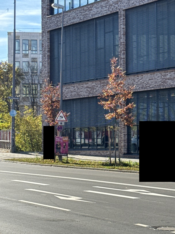 Plakat unsachgemäß befestigt/angebracht In Bearbeitung Statusverlauf und Antworten Statusvermerk Das Anliegen wurde erstellt. Status Offen Di, 04.11.2025 - 12:44 Statusvermerk Vielen Dank für Ihre Meldung. Wir werden dieser schnellstmöglich nachgehen und die notwendigen Maßnahmen veranlassen. Status In Bearbeitung Di, 02.12.2025 - 13:45