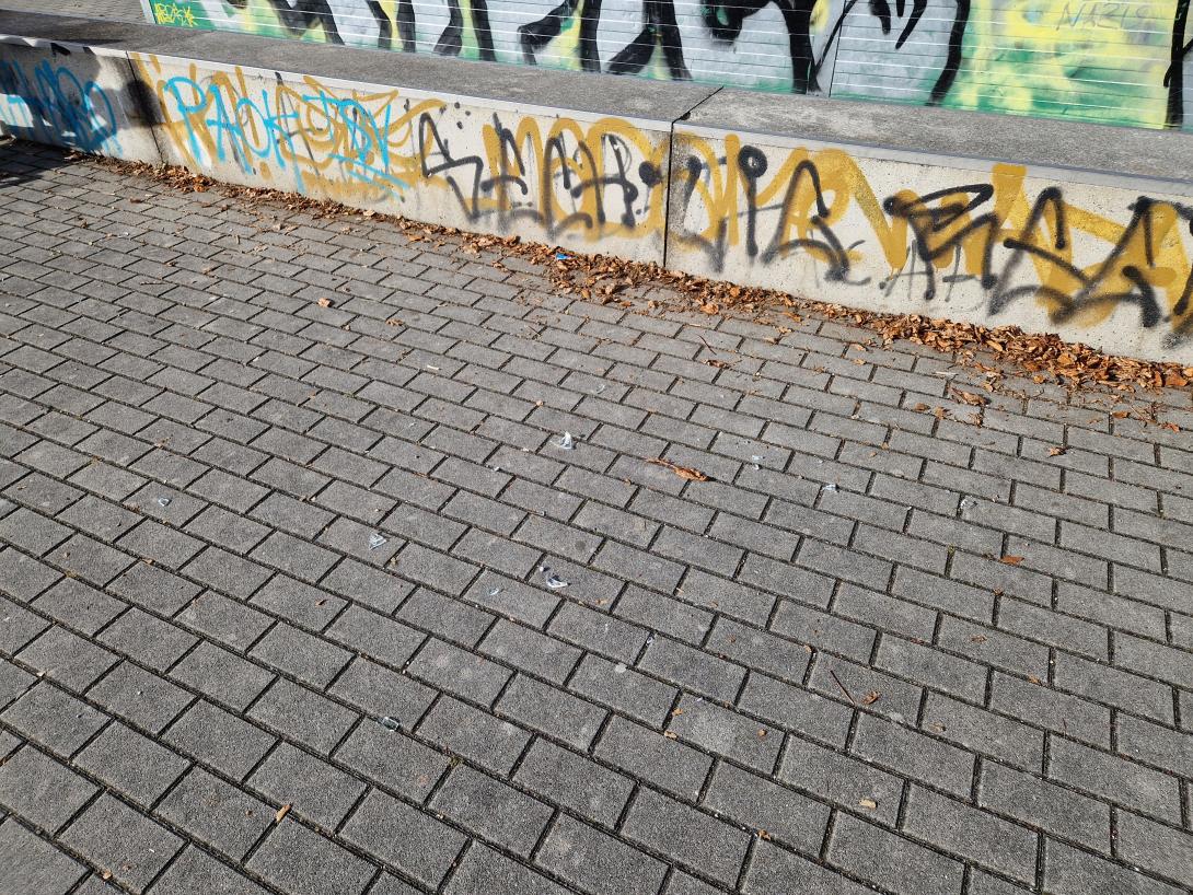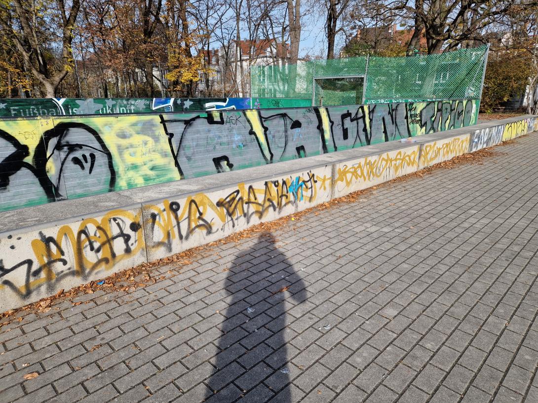 Glasscherben bei dem Fußballfeld hinten im Maßmannpark.
