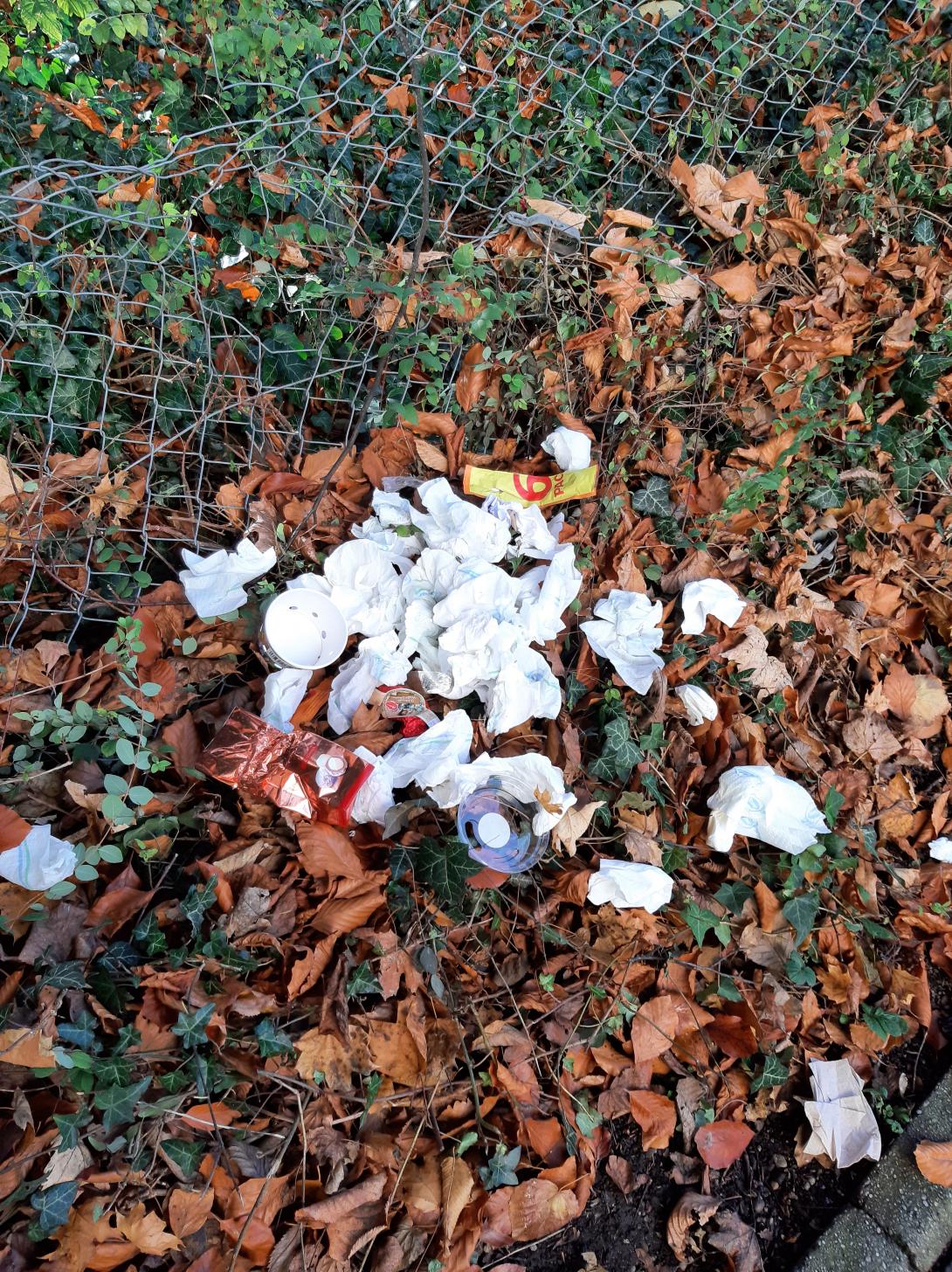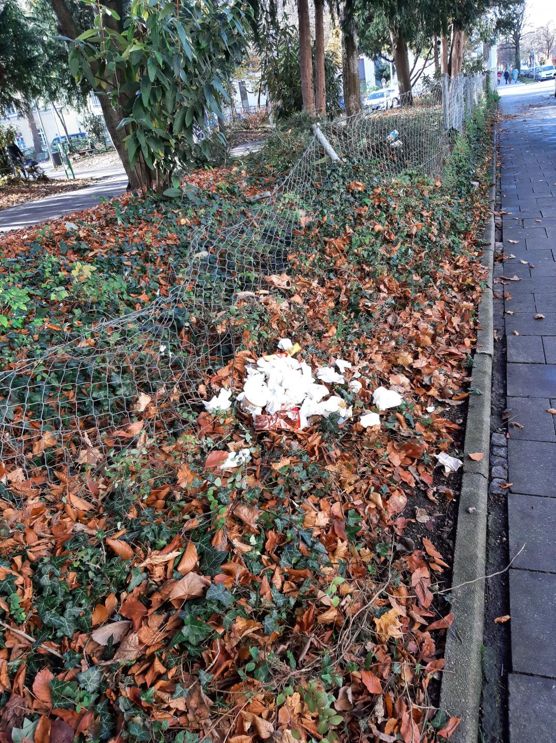 Nußbaumstr 14 schräg gegenüber, Nußbaumpark direkt am Zaun, Verschmutzungen.