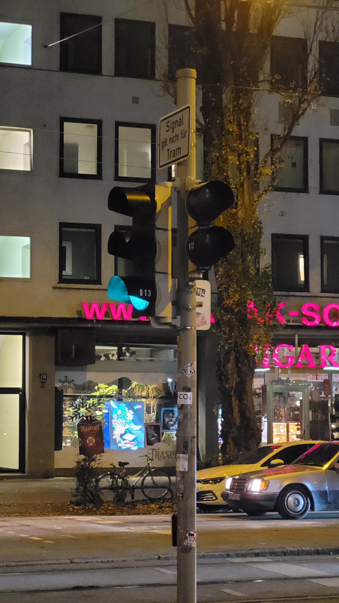 Die Rotschaltung der Fussgängerampel bei der Tram Haltestelle Bartstrasse ist ausgefallen.