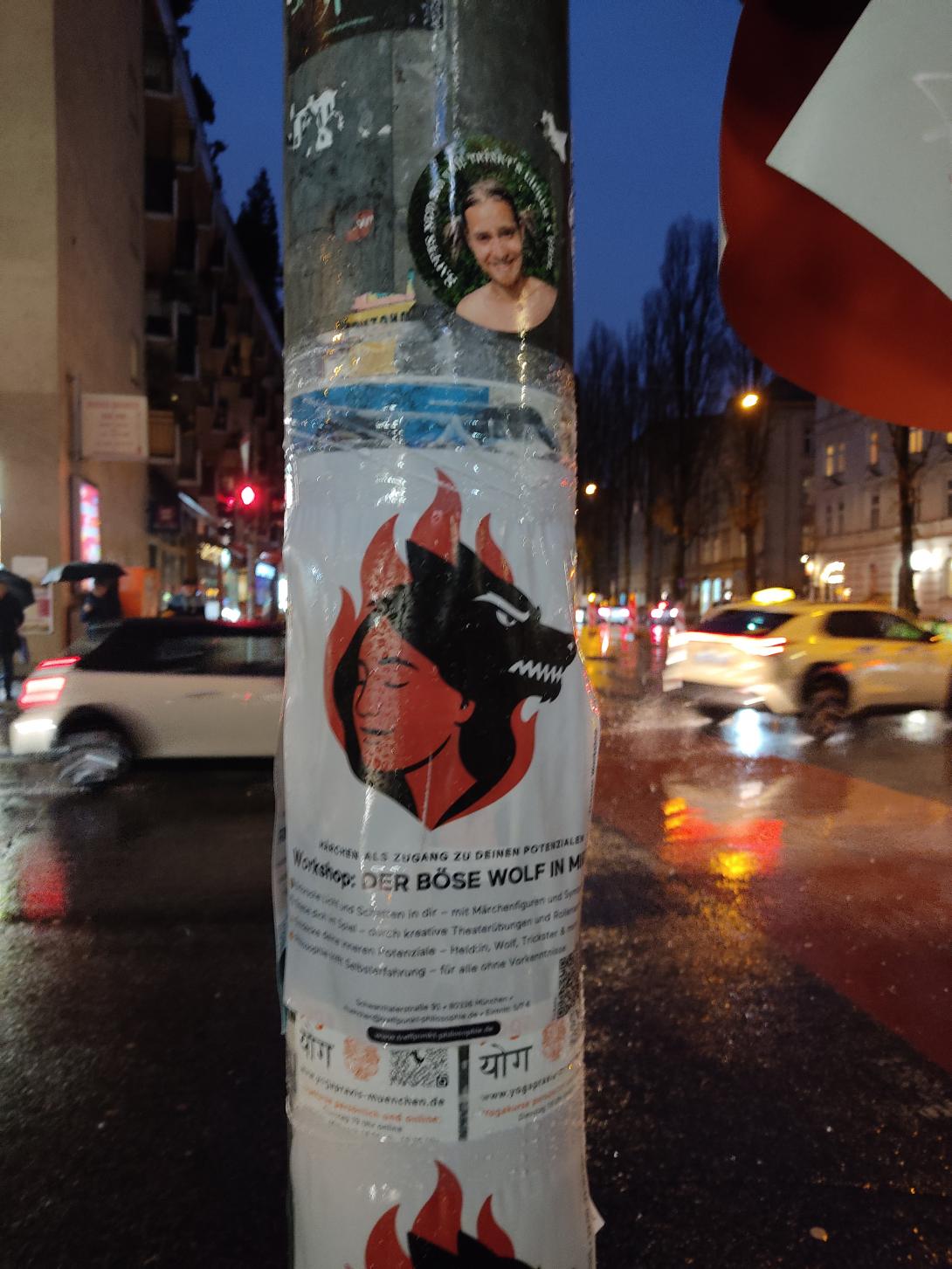 Die gesamten Masten der LZA sind mit Werbung für eine Veranstaltung beklebt worden.