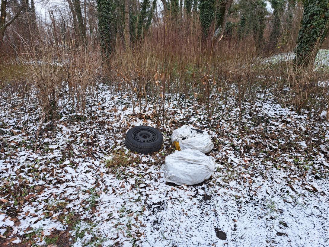 Am Parkplatz Feldmochinger See /Karlsfelderstr. wurden Autoreifen entsorgt.