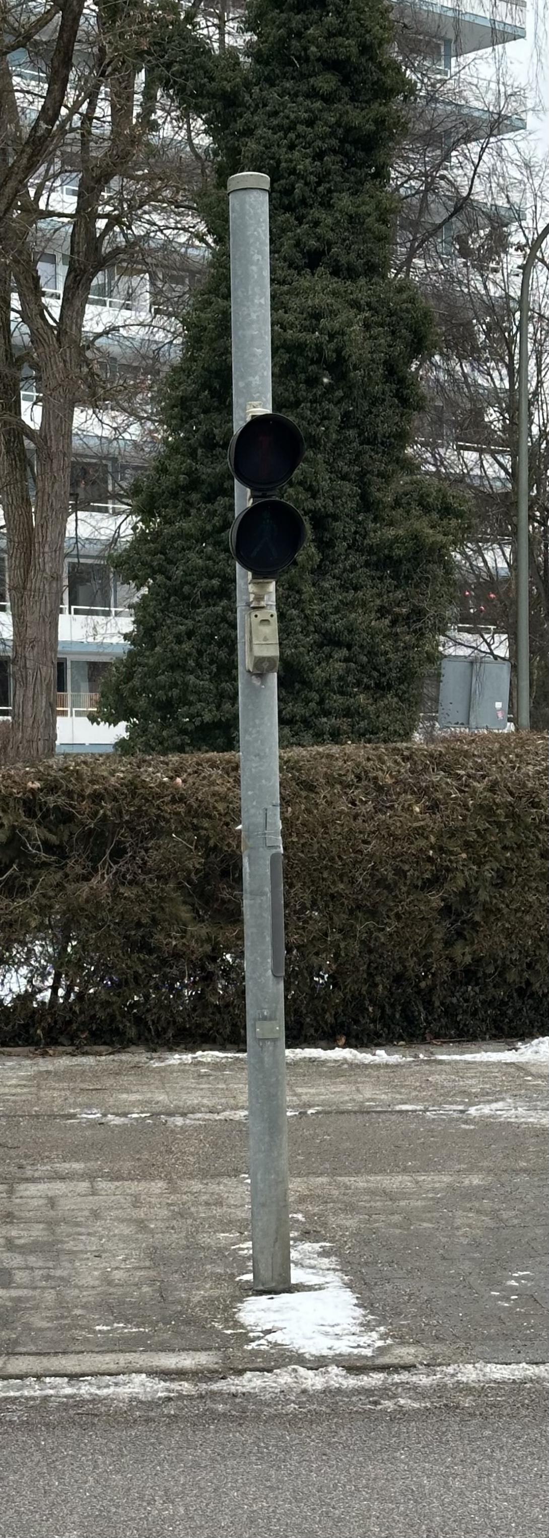 Bei einer Fußgängerampel ist das rote Licht defekt. Grün funktioniert